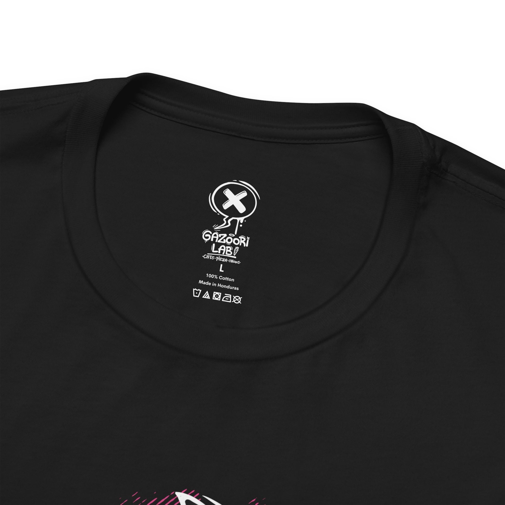 These shirts keep it cool in the front — and wild in the back. Each piece features a bold back print straight from the Gazoori lab: space pizzas, moody cats, angry snacks, flat Earth conspiracies, and other weirdness you didn’t know you needed.From behind, things get a little unhinged — in the best possible way.Every design is illustrated by hand with clean lines, bold colors, and that ‘cute-but-a-little-evil’ spirit.Perfect for anyone who likes to turn heads — even after they walk away.Ideal for gifting (holidays, birthdays, or just because), or for treating yourself to something that actually feels like you.