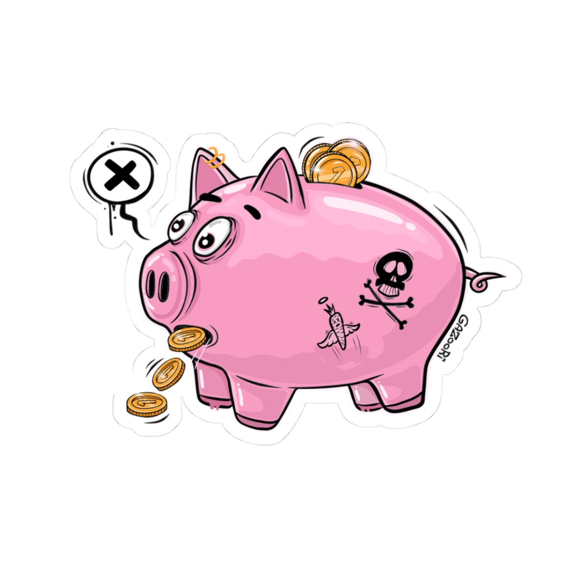 Piggy Bank Sticker | Funny Vinyl Sticker | Cartoon Laptop Decal | Street Art Style Accessory