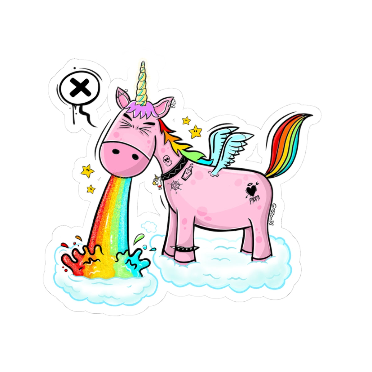 Forget the fairytales — this unicorn doesn’t sparkle, it pukes rainbows. A pastel pink misfit with wings, stars, and a little too much attitude, turning cute magic into messy chaos. It’s sarcastic, colorful, and perfectly weird — the anti-princess mascot you never knew you needed. A street-art twist on fantasy that’s equal parts hilarious and unhinged.